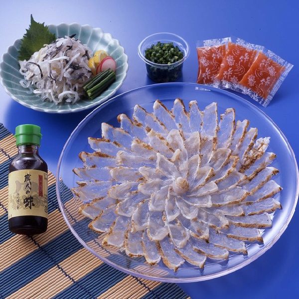 新鮮な山口の味をおとどけいたします。【送料無料】山口県産人気のマフグ『真ふぐ料理詰合せ MF』 価格: 6,300円 レビュー評価: 0.0 レビュー数:0 【賞味期限】冷凍30日【商品内容】(2人前) 真ふぐ刺身30g皿付、真ふぐたたき40g皿付、真ふぐ唐揚200g、ポン酢、もみじおろし こちらの商品は受注生産になりますのでお届けまで1週間ほどかかります。代引きでのお支払いはできません。ご購入の前にご確認ください。 運送会社ヤマト運輸発送形態冷凍代引き不可包装専用箱のし○明細書×同梱について不可真ふぐはトラフグにくらべやや小ぶり(体長40センチぐらい)で、もっちりと柔らかい弾力のある、ややあめ色がかった身が特徴で、その上品な味はトラフグの王様に対して「ふぐの女王」と呼ばれ、昔から漁師の間では珍重されてきました。山口県産の『真ふぐ』を存分に味わえる Supported by 楽天ウェブサービス |